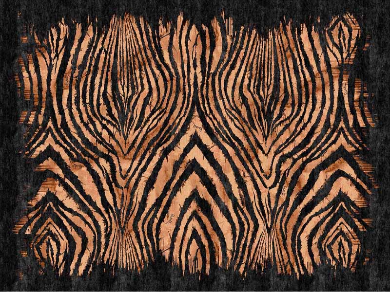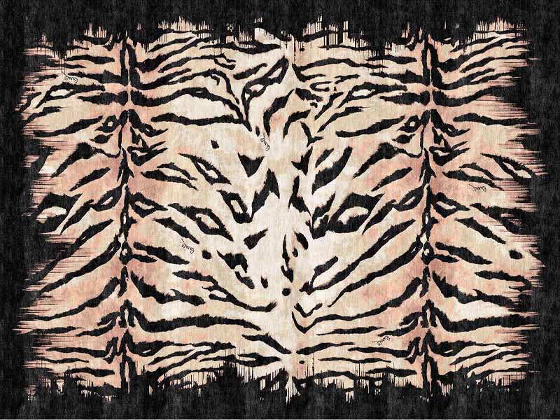 The collection comprises several rugs with characteristic animalistic prints in neutral and black tones: Jaguar, Tiger, Zebra as well as Flag. The pieces are handmade from New Zealand wool and bamboo silk. The Flag rug deserves special attention. Its geometry is an allusion to the American flag filled with animal patterns.