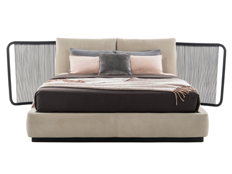 For those who have always dreamed of decorating their bedroom royally, Opera Contemporary offers the Vertigo bed. The main feature of the product is a high headboard, decorated with elegant couplings and framed by a spectacular metal edging. The whimsical pattern on the monochrome material is reminiscent of a sunrise or an open peacock's tail. It is an artistic expression of Art Nouveau sophistication that will be an eye-catcher in any bedroom.