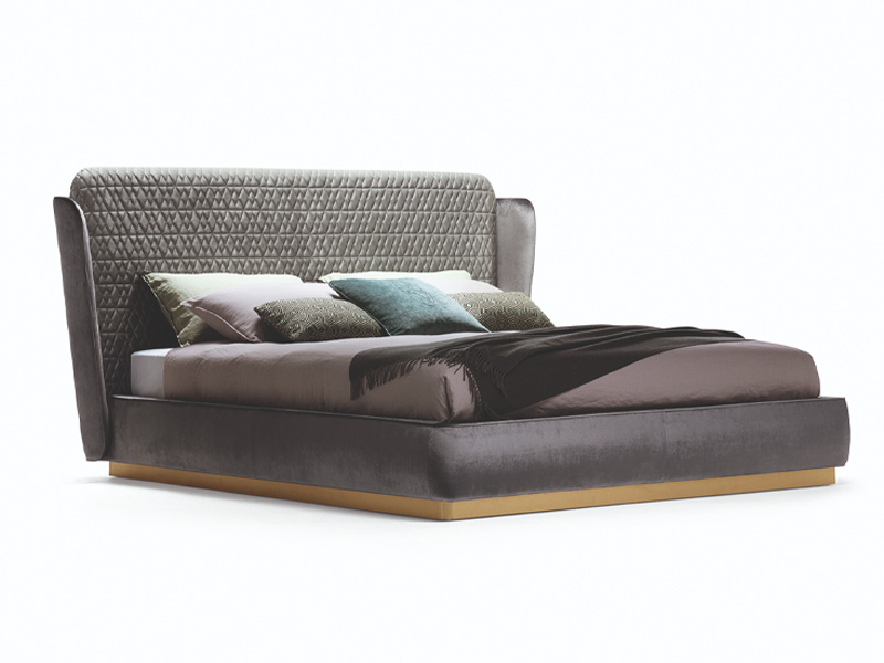 Another solution with a high headboard is the Janet bed, which stands out for its colour and material harmony. The quilted, soft headboard contrasts with the warm metal accents in the base. The model will fit perfectly into both modern and classic bedrooms and will delight you with interesting textural effects.