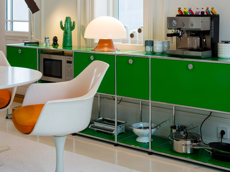 The photo shows a project from the Swiss factory USM, which means ideas for a stylish, democratic and functional interior.