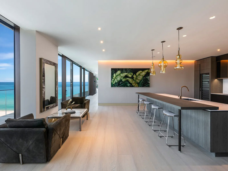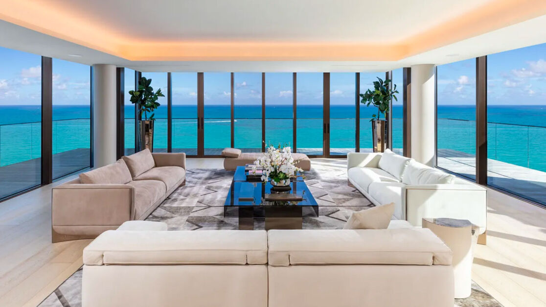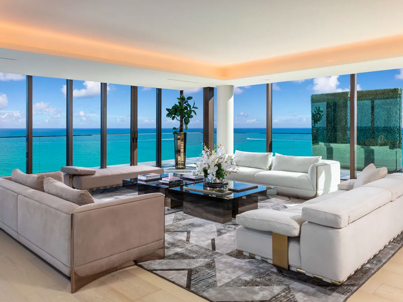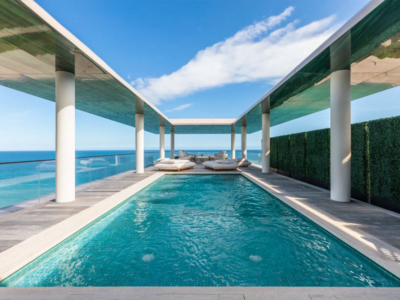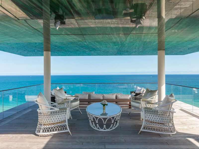 This exclusive penthouse is located in the Arte Surfside complex in Miami. The building is designed as a work of art and is shaped like a pagoda. It includes 16 luxury residences designed as exclusive belvederes overlooking the ocean. All offer the opportunity to enjoy the kind of outdoor living that is so typical of Mediterranean cultures.