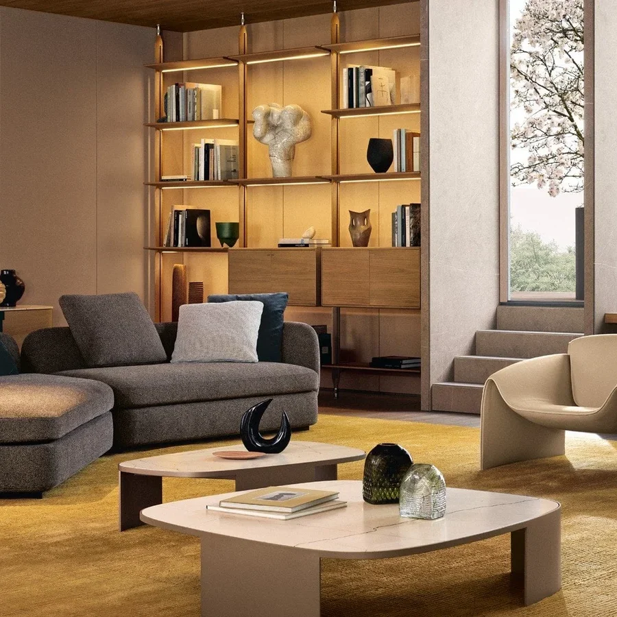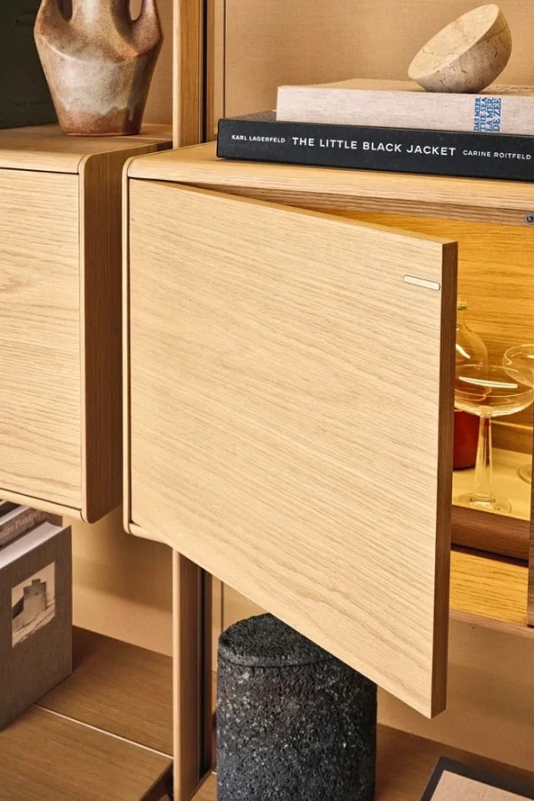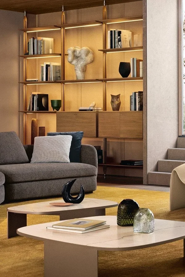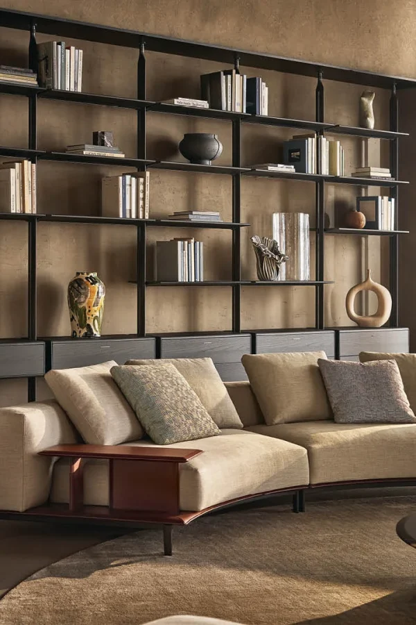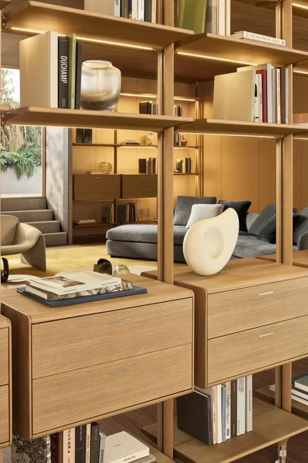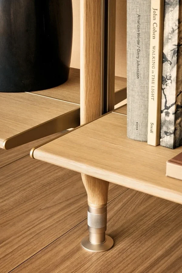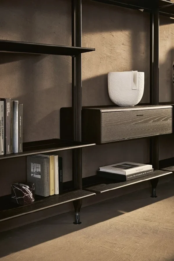 Гибкая интерьерная система, в которой строгость алюминиевых стоек встречается с теплом натурального дерева. Lexington переосмысливает концепцию стеллажа, предлагая полную свободу в расположении полок и модулей: каждый элемент закрепляется на нужной высоте, создавая индивидуальный ритм пространства. Архитектурная чистота линий подчеркивается отсутствием лишних деталей и возможностью создания двусторонних конструкций, которые не только хранят вещи, но и деликатно зонируют помещение.