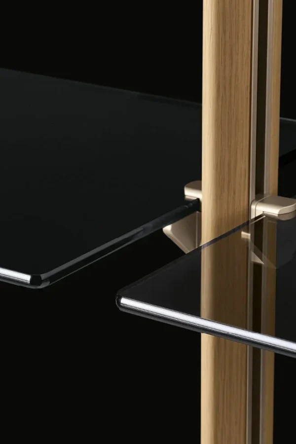 Исполнение стоек варьируется от технологичных металлических отделок до тактильного шпона дуба и вяза, что позволяет системе менять облик от индустриального до классического. Продуманная функциональность дополняется встроенной диммируемой LED-подсветкой и специализированными модулями, включая секции для ТВ с кабель-менеджментом, что делает Lexington идеальным решением для современной гостиной.