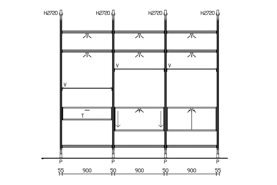 • Персонализированное хранение: полки и закрытые модули (ящики, распашные и откидные дверцы) фиксируются на любой высоте
