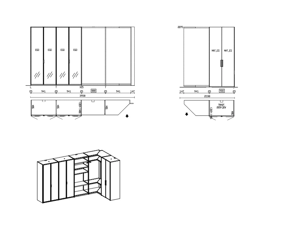 | Структура | Комбинированный гардероб, состоящий из модулей с прозрачными (Ego) и глухими (Match) фасадами |
