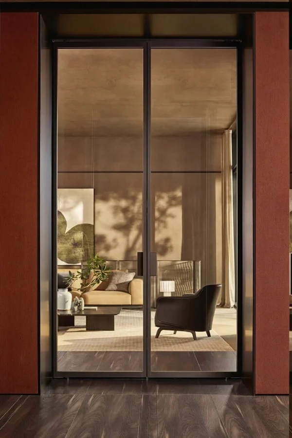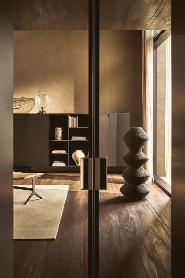 - Универсальная эстетика: эффектное сочетание прозрачного светоотражающего стекла Ego и выразительной фактуры дерева системы Match